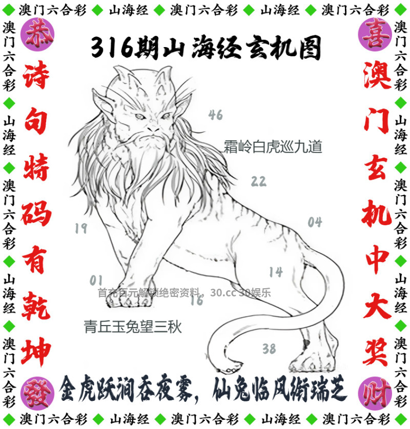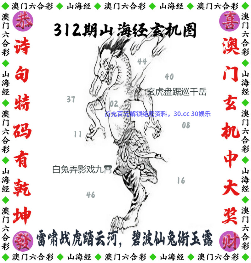 解释:巫山神犬啸雷霆,瑶池仙豕衔瑞光解狗虎兔